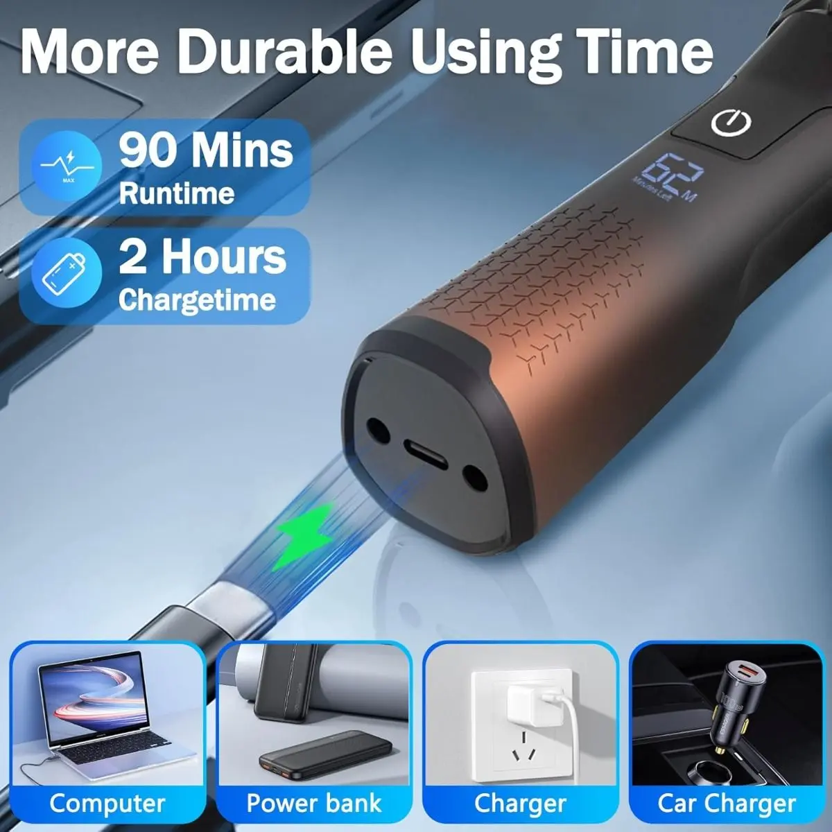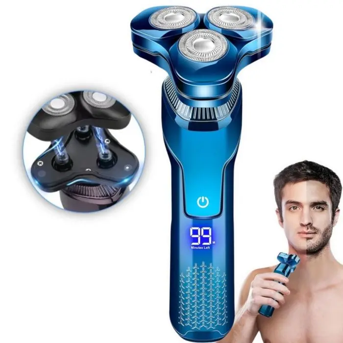 Cortador de doble pista y cabezal flotante 4D: la red de corte de doble pista y la hoja de acero afilada hacen que el área y el número de entrada de barba de la afeitadora se dupliquen, optimizando el tiempo de afeitado. El cabezal flotante 4D se adapta automáticamente a los contornos de tu rostro y cuello, incluso a la línea de la mandíbula, para proporcionar un afeitado apurado y suave. Simplemente acerque el cuerpo de la afeitadora a su cara y se alinearán automáticamente gracias a la inducción magnética.