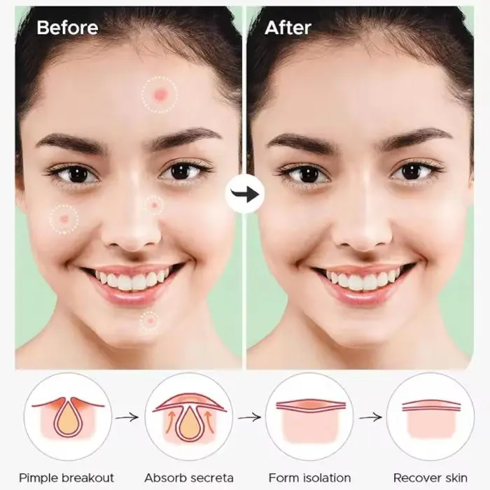 Ingredientes naturales: nuestros parches para el acné contienen ingredientes naturales como aceite de árbol de té, ácido salicílico y aceite de caléndula. Estos parches de espinillas para la cara son altamente efectivos para absorber la suciedad y reducir los puntos